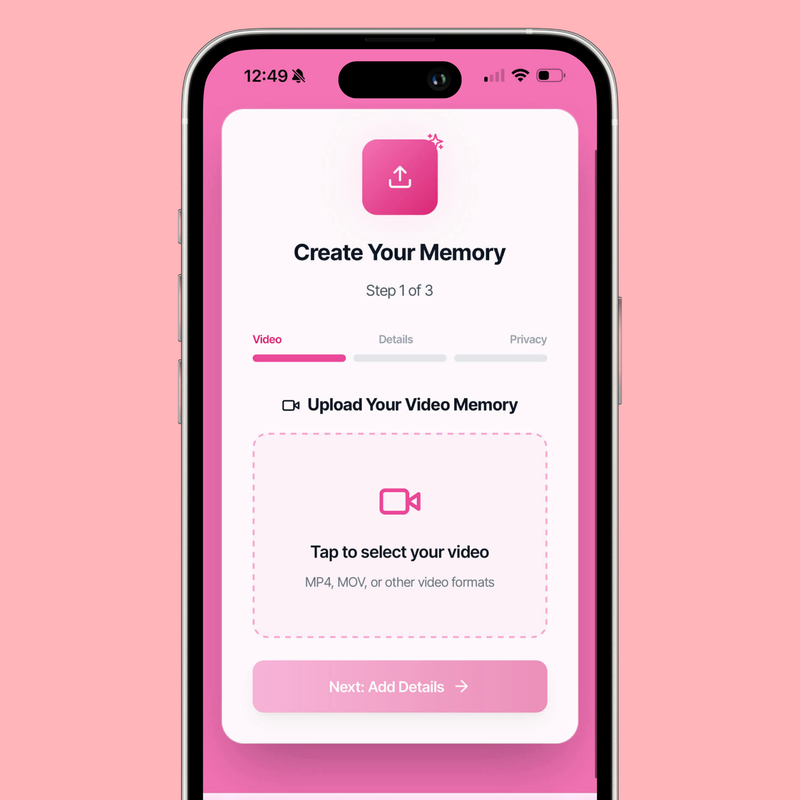 Upload a video from your camera roll, give it a title, and choose either public (Anyone who taps the Heartifact can see it), or private (locked with a 6 digit code for more 'private' messages)